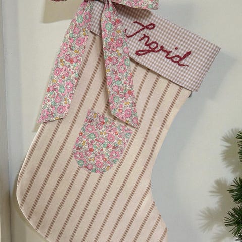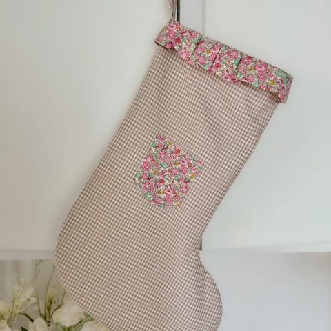 Hjemmesyet julesok med valgfrit bogstav i stof fra Liberty of London🌸