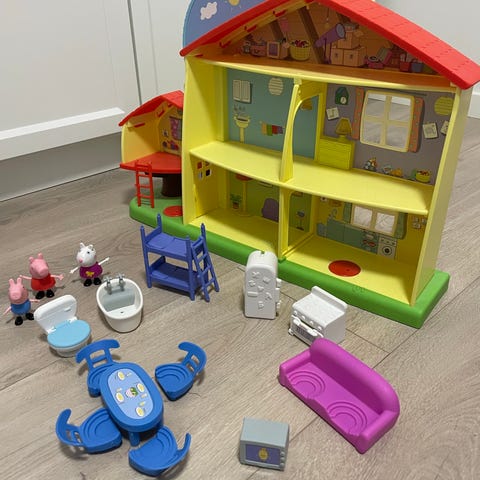 Gurli gris dukkehus der foldes ud. Der er flere fine rum, og Gurli gris figur. Håndtag så man nemt kan have den med.
