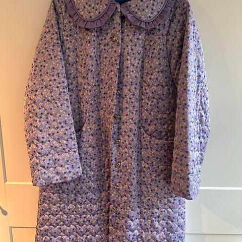 Jakken er med bælte, så jakken kan gøres mindre, ved at binde det bagpå, hvis man ønsker den stående åben, hvad er super smart.