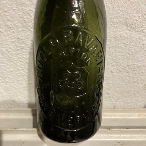 Et stykke gammel engelsk ølflaske over 100 år gammel med indvendig gevind