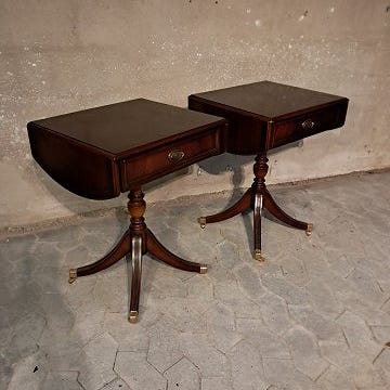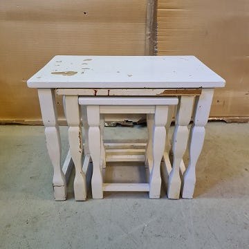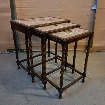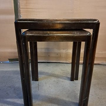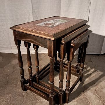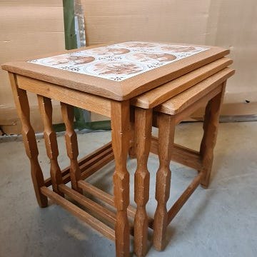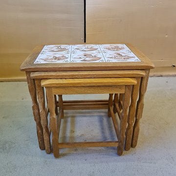 2 Borde i massivt egetræ og kakler, fra 1980erne.