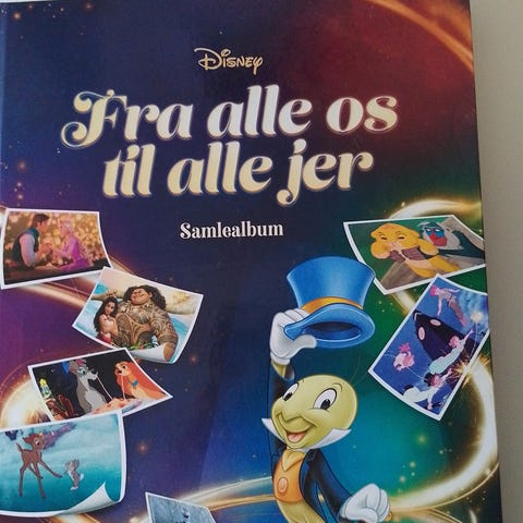 Disney Fra alle os til alle jer Samlealbum med plads til klistermærker fra forskellige Disney-film. Albummet indeholder sider med illustrationer og tomme felter til indsætning af samleklistermærker, herunder motiver fra klassiske og nyere Disney-historier.