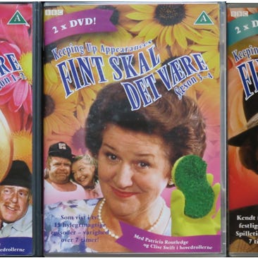 Keeping Up Appearances er den populære britiske komedieserie med Patricia Routledge som nabolagets snob, Fru Hyacinth Bucket (udtales Bouquet), der som bekendt ikke skyr nogle anstrengelser for at bevare den fornemme facade, og Clive Swift som hendes hårdtprøvede ægtefælle Richard.