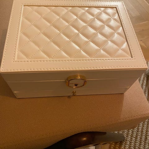 Er brugt i under et år, sælges grundet flytning. Fejler intet, andet end små brugsspor, den har været frugt til opbevaring af makeup. Nypris 99,-