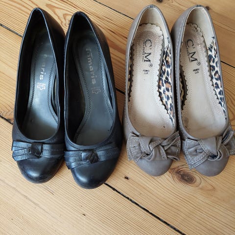 Rigtig pæne sorte sko med lille tynd hæl højde 7 cm Brugt har lille mærke på den ene hæl men er ellers i orden.