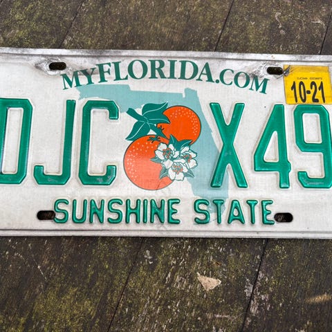 Florida the sunshine State, ægte nummerplade stadig med klistermærke i rigtig flot stand trods kørsel. Fast pris