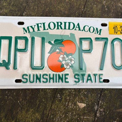 Florida the sunshine State, ægte nummerplade stadig med klistermærke i rigtig flot stand trods kørsel. Fast pris