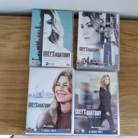 Grey's Anatomy Hvide Verden. DVD sæson 1 til 10. Serien er på dansk og indeholder alle episoder fra de viste sæsoner. Perfekt til samlere eller fans af serien.