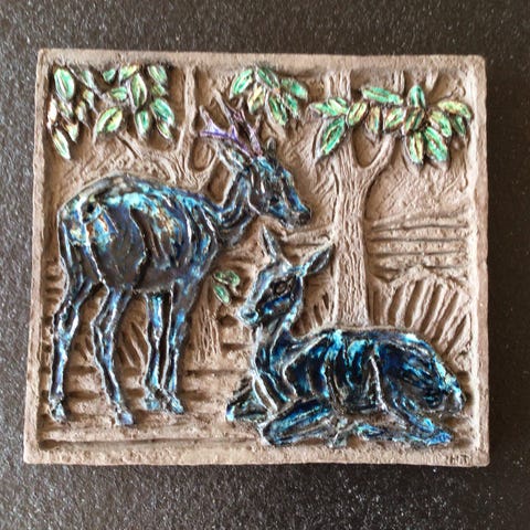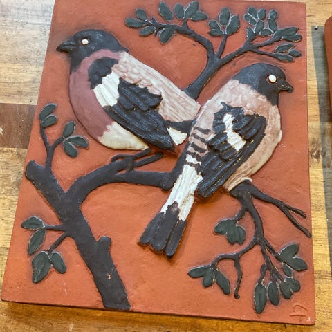 Stort relief fra Knabstrup, i fin stand, b:31,5, h:28, kan sendes indpakket for 75 med gls til pakkeshop