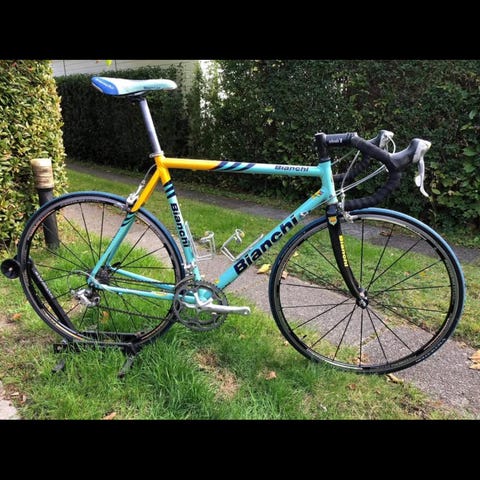 Basso Diamante i den fine sølvgrå farve. Shimano Ultegra manuel geargruppe, Fulcrum Zero Nite hjulsæt, Look Keo Carbon pedaler.