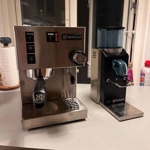 Florenzato Bricoletta espresso kaffemaskine i rustfrit stål med manuel betjening. Virkelig flot maskine. Har en enkelt bryggehoved, dampstav til skumning af mælk og en til varmt vand. Brugt men virker som den skal. Sælges da jeg vil prøve noget nyt.