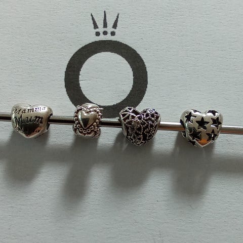 Jeg sælger 3 originale Pandora hjerte-charms i 925 sterling sølv: