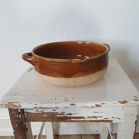 Stort flot Marokkansk lerfad. Rigtig flot som pyntefad, frugtfad, eller som dekorativ vægpynt. Hullerne i foden bagpå, er beregnet til ophæng med snor/ ståltråd, til det kan hænges op. Har selv købt det i Marokko.