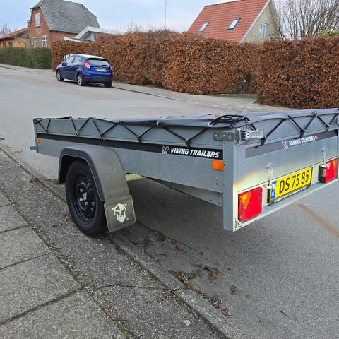 Sælges på grund af køb af større trailere, næsehjul 3 tværgående stænger presenning trailer lås samt stroppe kasse