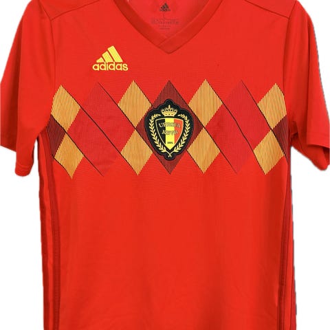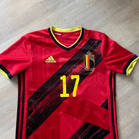 I sommeren 2020 gjorde Belgien klar til at jagte drømmen om EM-guld med en stærk generation af stjerner. Denne udebanetrøje blev hurtigt genkendelig med sit unikke marmormønster og de karakteristiske røde Adidas-striber på skuldrene. Her i en udgave med Youri Tielemans’ navn og nummer 8, en af midtbanens helt store talenter.