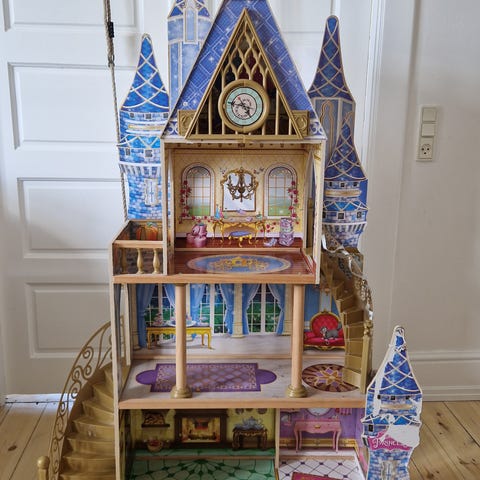 Det er købt for et par år siden på amazon.de og dengang kostede det 1100 kr. Pt koster Minni Mouse huset 592 kr på amazon.de. Der kommer en Minni Mouse figur med, en Andersine figur med, deres hund Bella, diverse møbler og en rutchebane med.