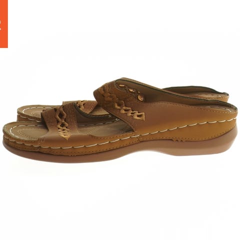 Denne sandal er designet i en stilfuld sort farve med dekorative udskæringer på strapene, hvilket giver en elegant touch. Den er åben ved tåen og har en behagelig, brun sål med god stødabsorbering. Størrelsen på sandalen er 38, hvilket gør den velegnet til kvinder med denne skostørrelse.