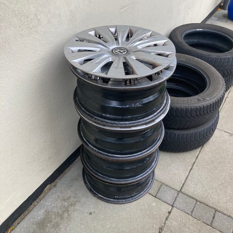 Er brugt til vinterfælge på golf 5. Der skal nye dæk på. Hulmål 112
