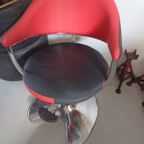 Tre stole. Kunstlæder. En med en revne som på foto. Mål ca. cm. Hydrauliske pumper virker. Sælges kun samlet. Kun afhentning.