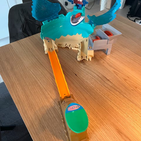 Hot Wheels Haj-affyrer banestykke. Kan affyre en bil og kobles til andre Hot Wheels banestykker. Har få brugspor, men er udover det I pæn stand.