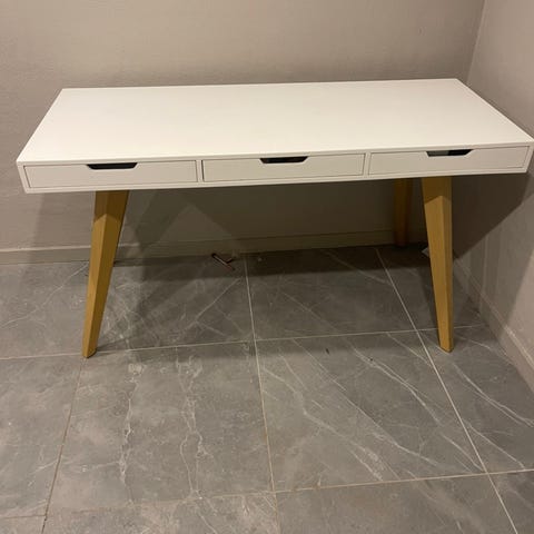 Skrivebord med skuffe fra Ilva i pæn stand. Kun de mærker som ses på billedet. Stol medfølger.