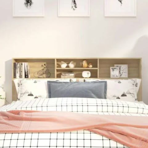 Massiv gråmeleret sengegavl