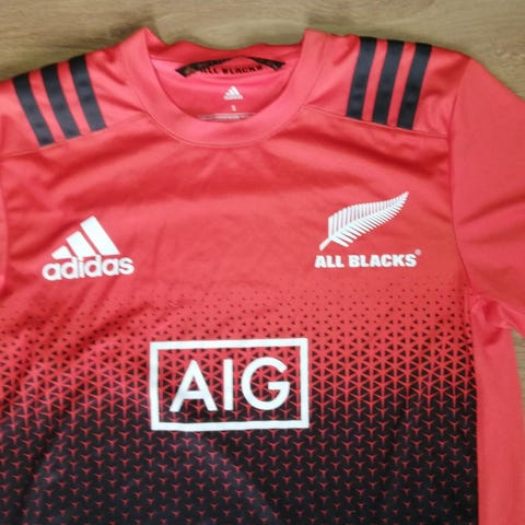 Adidas official licensed product All Blacks rugbytrøje til mænd i størrelse S - men passer snildt til en medium. Grå med sorte detaljer ved krave og skuldre. New Zealand rugby landshold