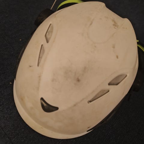 Hjelm med høreværn, Partner Sikkerhedshjelm. Visiret mangler. Ann. nr. T1096