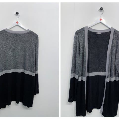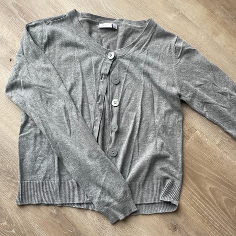 Fransa Cardigan til kvinder i størrelse XXL. Cardiganen er grå og har knapper foran. Den er lavet af et blødt materiale, egnet til daglig brug og lag-på-lag påklædning.