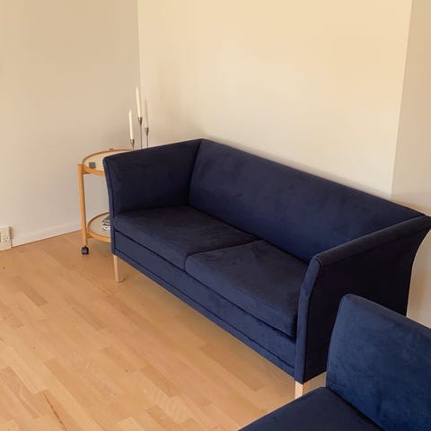 Nielaus Handy 3 personers sofa købt i Olsson møbler, og sælges stadig for omkring 20.000 . Skal have nyt betræk men det er meget let at skifte (med lynlås og velcro) og sælges i Olsson og andre forhandlere af Nielaus Handy sofa. Selve rammen og hynder er i meget fin stand. Bare betrækket der skal skiftes