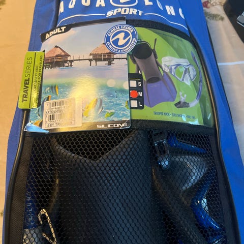 Snorkel i gul og blå farve med justerbare stropper. Designet til brug ved snorkling og undervandsaktiviteter. Materialet er holdbart og egnet til vandmiljøer. Passer til voksne.