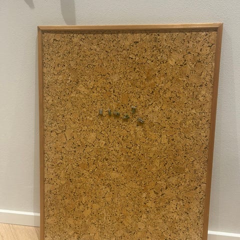 En sjov lille opslagstavle, som kan bruges til at skabe overblik - både for den enkelte og - i bogstaveligste forstand - hele hustanden. Huset er ca. 40 cm høj og omkring 30 cm i bredden. Opslagstavlen er i god stand, men der lidt rødt glitter på den, som kun ses, når man er tæt på.