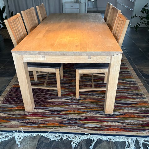 Lyst bord med udtræk og plader. 6 egetræ stole pænt betræk Giv et bud