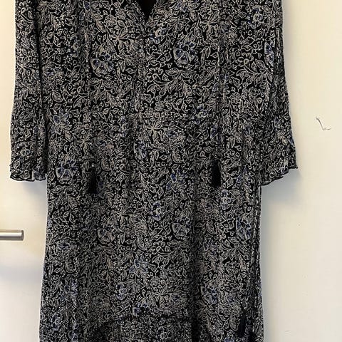 Smuk og elegant sort/blå mønstret kjole fra Moliin i str. M