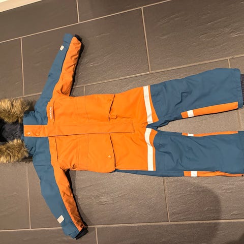 Didriksons unisex børneflyverdragt i størrelse 98, gul farve. Flyverdragten er designet til børn og egnet til udendørs brug i koldt vejr. Materialet og designet sikrer beskyttelse mod vind og vejr.