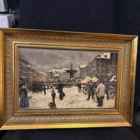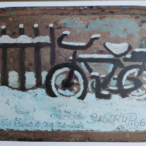Poul Høm' Vinterbillede af 'Ung mand i landskab fra 1966. Indrammet.