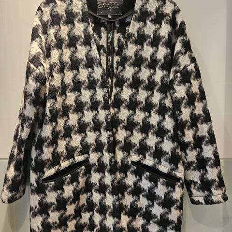 Længde jakke 80 cm., armlængde 61cm., bust 120 cm., livvide 125cm. (kvinde på bil. er 165 cm højde)