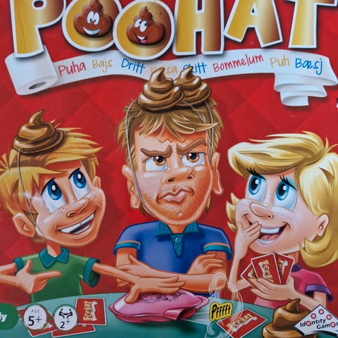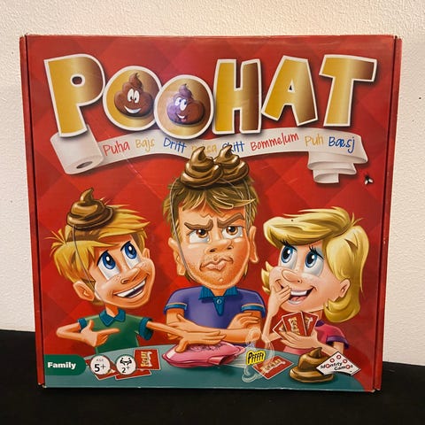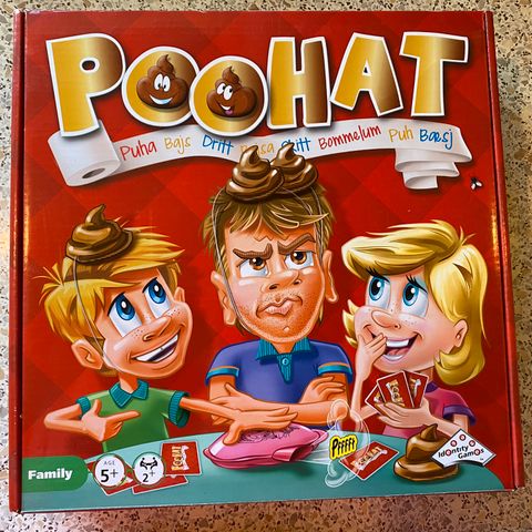 Poohat Familiespil brætspil til 3-6 spillere, anbefalet alder 4 år og opefter. Spilletid ca. 20 minutter. Indeholder spilleplade, kort og terning. Spillet er designet til familiebrug og fremmer social interaktion.