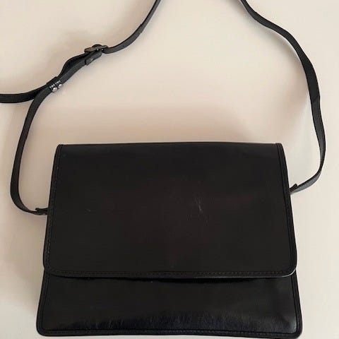 Sort skind taske fra Adax brugt men stadig god. Der er flere rum indvendig stoffet er pæn og intakt. Der er en lille defekt ved lynlåsen men det har ingen betydning for lukning . ( lynlåsen har siddet fast) se billede