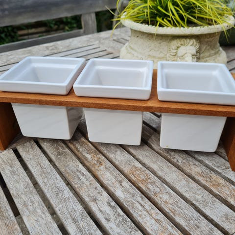 Teak / keramik (23x21x10 cm). Helt ny i kasse.