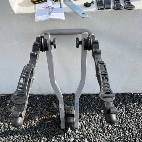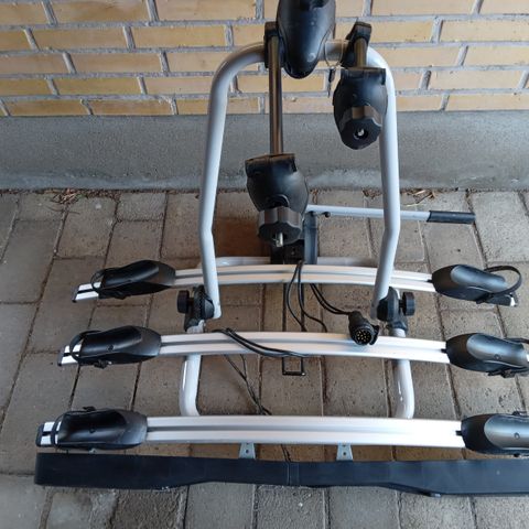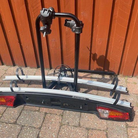 Menabo Marius cykelholder designet til at transportere op til 3 cykler. Fremstillet i metal med justerbare stropper til fastgørelse af cyklerne. Passer til forskellige cykelrammer og monteres på bilens anhængertræk. Farve: sølv/grå.