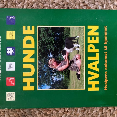 Hvalpe håndbog bog med billede af en hvalp på forsiden. Indeholder information om hvalpepleje og opdragelse.