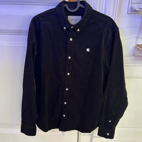 Carhartt M Skjorte i mørkeblå farve. Fremstillet af 100% bomuld. Skjorten har to brystlommer med knaplukning og lange ærmer med knapper ved manchetterne. Designet til mænd men kan godt bruges af kvinder. Solid velkendt Carhartt kvalitet. Sælges udelukkende da den er en tand for lille til mig