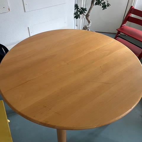 Håndlavet rundt snedker spisebord i massivt røget eg