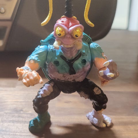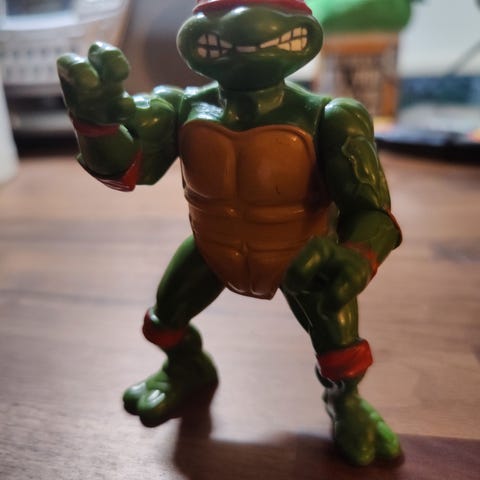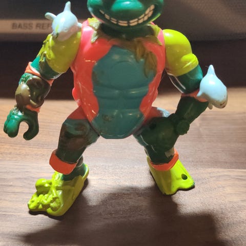 Sjældent at finde med så meget af det oprindelige tilbehør. Et must for enhver TMNT-samler!