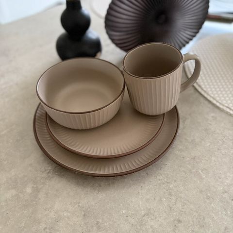 Kaffe og spisestel komplet 12 stk kopper, underkop, dessert, Flade og dybe tallerkener. Næsten ikke brugt, ingen skår