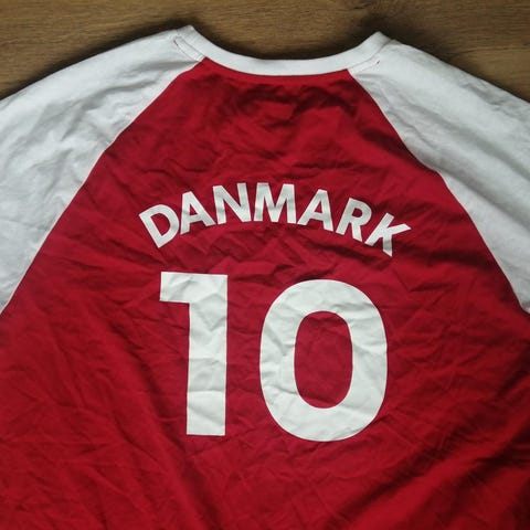 DANMARK HUMMEL FAN TSHIRT, STR. XL, BOMULD, DBU LOGO(EN SMULE KRAKELERET) ELLERS ER STANDEN OK. FIN FAN TSHIRT FRA DET DANSKE FODBOLD LANDSHOLD. NB ER VAREN AKTIV ER VAREN TIL SALG, SENDER GERNE, SÆLGES IKKE SOM FIKS FÆRDIG, BETALING INDEN AFSENDELSE.