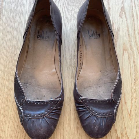 Billi Bi ballerina sko i størrelse 38 med leopardmønster. Skoene er designet til kvinder og har en lav hæl og åbent sidesnit. Materialet fremstår som syntetisk eller læder med leopardprint, hvilket giver skoene et unikt og iøjnefaldende udseende. Velegnet til hverdag og lette udendørsaktiviteter.