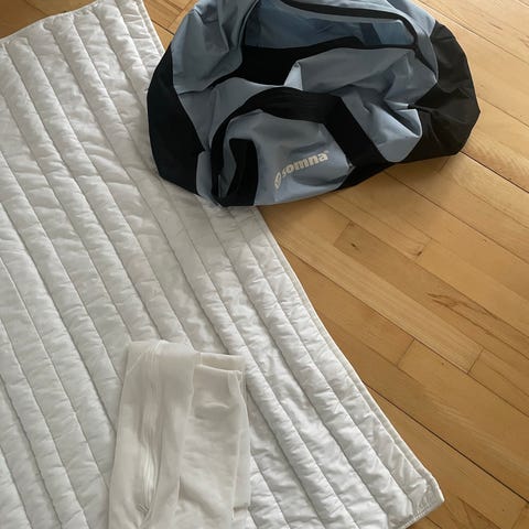 Hænger. Ude til tørre da den blev våd o regnen så gule skjolder