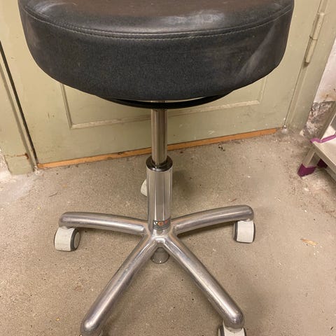 Brugt men god .. hæves op og ned med gasfjeder knap maks højde på77cm og laveste 55cm